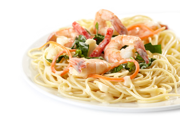 227. Gamberoni Auflauf Categories: Aufläufe Nudeln (C, F) mit Riesengarnelen (I), Paprika, Chili, Knoblauch und Rahmsauce (5, A, B, C, D, E, F), überbacken mit Käse (1, 4, D) 14,90€